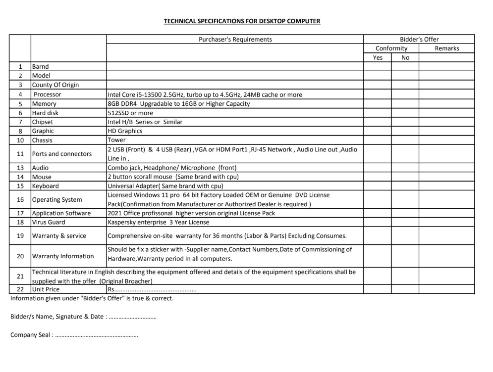 02. ටෙන්ඩර් බහාලන කවරයේ වම්පස ඉහල කෙලවරේ “ පරිගණක මිළදී ගැනීම සදහා මිළ ගණන් ” යනුවෙන් සදහන් කල යුතුය.