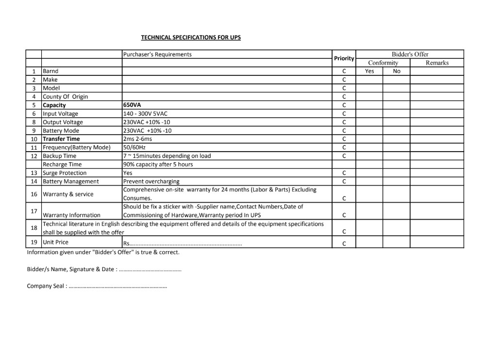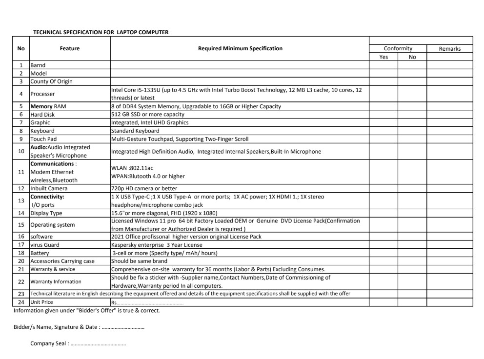 06. අදාළ භාණ්ඩ මිළදී ගැනීමේ පිරිවිතරය මේ සමග අමුනා ඇත. එකී පිරිවිතර භාවිතා කර ඔබගේ මිළගණන් එවිය යුතුය.