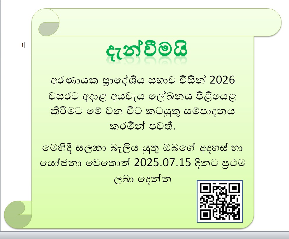 2025 වර්ෂය සදහා අරණායක සභාවට අවශ්ය භාණ්ඩ හා සේවා සැපයීම සදහා කැමැත්තක් දක්වන පිළිගත් නිෂ්පාදකයින්, සැපයුම්කරුවන් හා කොන්ත්රාත්කරුවන් ලියාපදිංචි කිරීම සදහා 2024/12/31 දින ප.ව.3.00 දක්වා අයදුම්පත් කැදවනු ලැබේ.