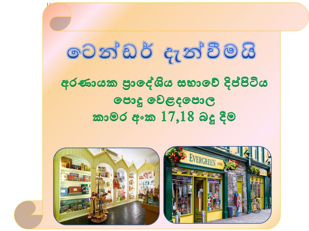 අරණායක ප්රාදේශීය සභාව සතු දිප්පිටිය පොදු වෙළඳපොල කාමර අංක 17,18 බදුදීම සඳහා ඒ පිළිබඳ උනන්දුවක් දක්වන ලංසුකරුවන්ගෙන් 2025.08.07 දින පෙ.ව.10.00 දක්වා ලංසු කැඳවනු ලැබේ.